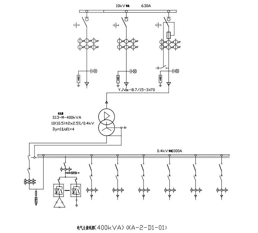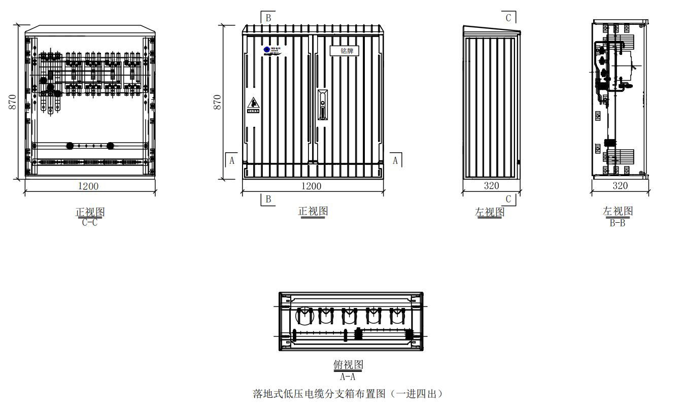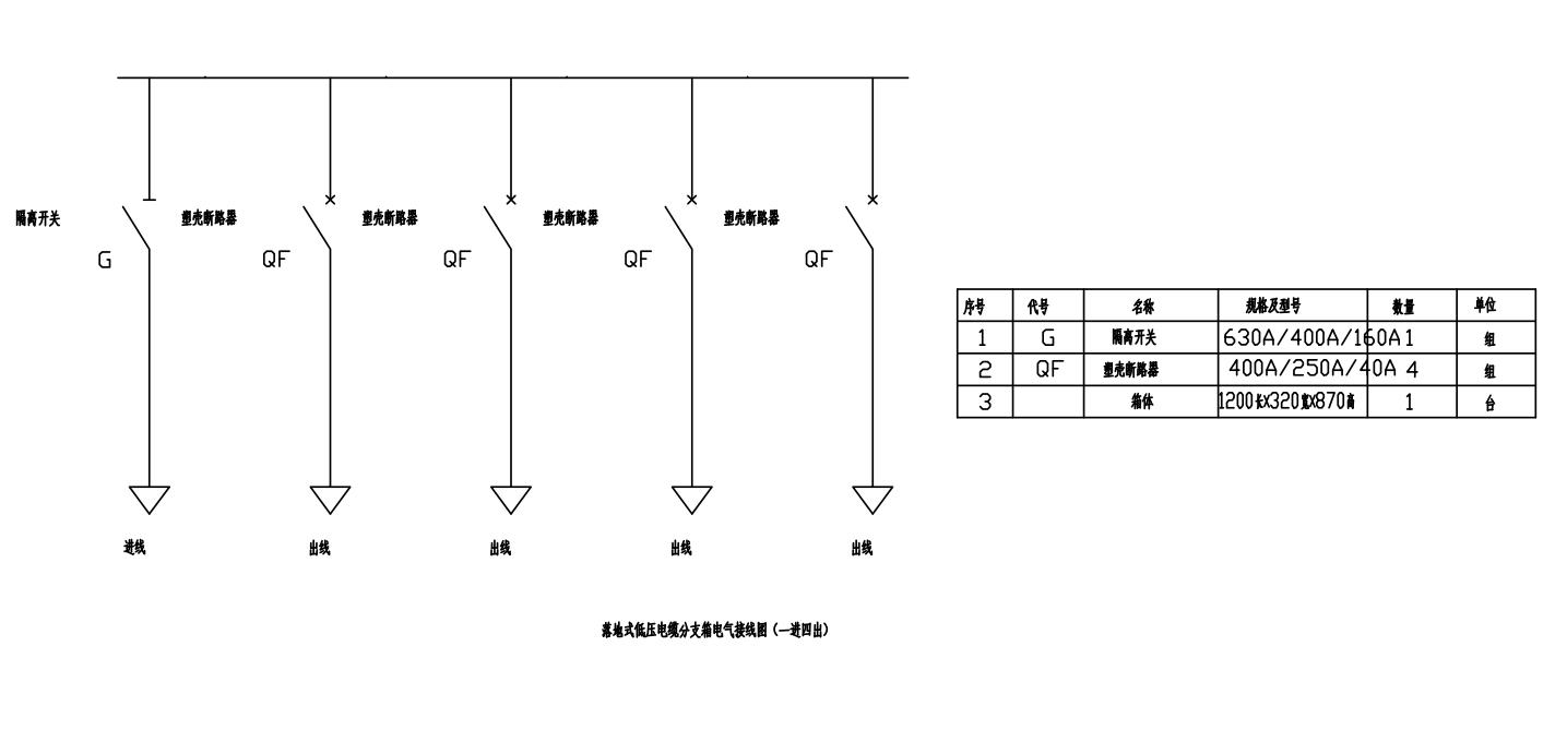 5、落地式低压电缆分支箱电气接线图(一进四出)